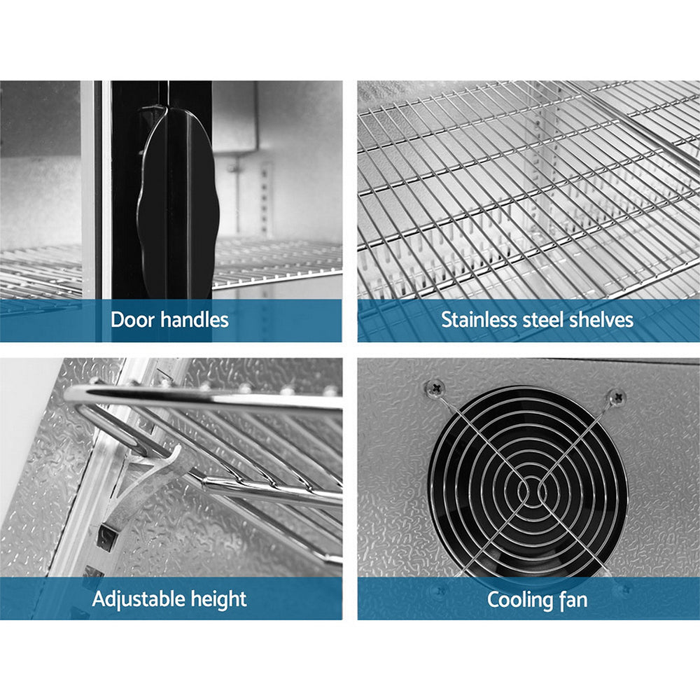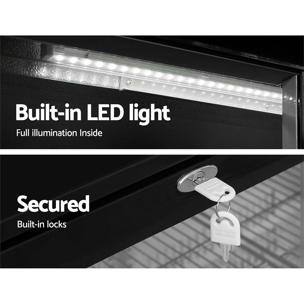 Our spacious Devanti Bar Fridge with double doors is great for keeping a variety of food and beverages chilled and cooled. Designed with adjustable temperature settings between 2°C and 10°C, the energy-efficient bar fridge lets you set your desired coolness and freshness. Other great features include fan-assisted cooling, LED temperature display, heavy-duty adjustable shelves, double-glazed tempered glass doors, built-in handles and consistent refrigeration to name a few. The bar fridge is also totally eco-friendly with its R600a freon-free refrigerant and well-made for robust use, such as the pressure-injected foam insulation and built-in LED light to ensure operation is smooth, quiet and hassle-free. The fridge also comes with built-in locks to keep the contents safe and secure, especially useful in a retail environment after you close for the night. Perfect for commercial environments such as bars, dessert shops, cafes and restaurants, the Devanti Bar Fridge is a cool investment time and again.