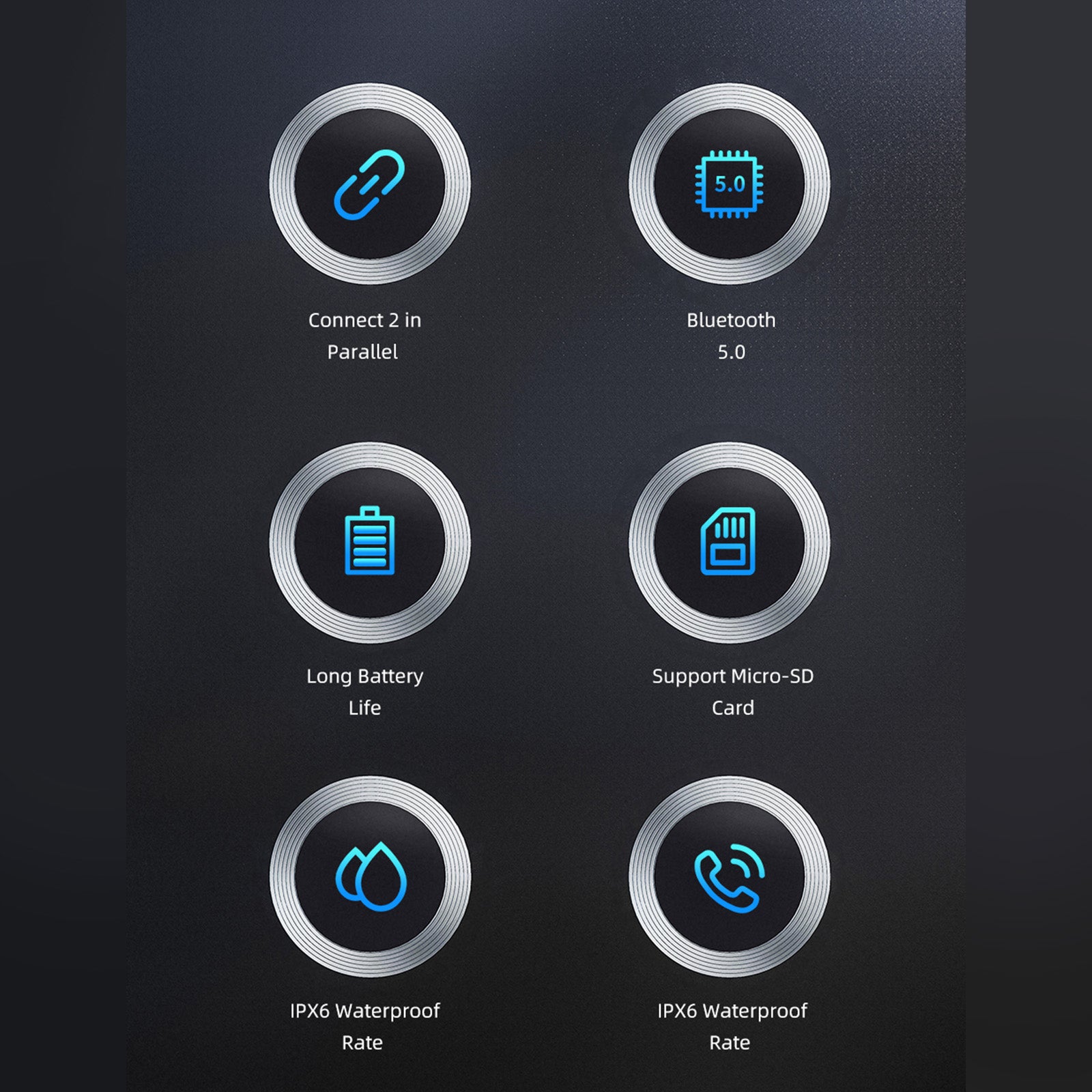 Featuring a minimalist waterproof design and powerful Bluetooth 5 chipset, Fitsmart Bluetooth speakers go where other speakers can\'t in a compact all-weather go anywhere design.